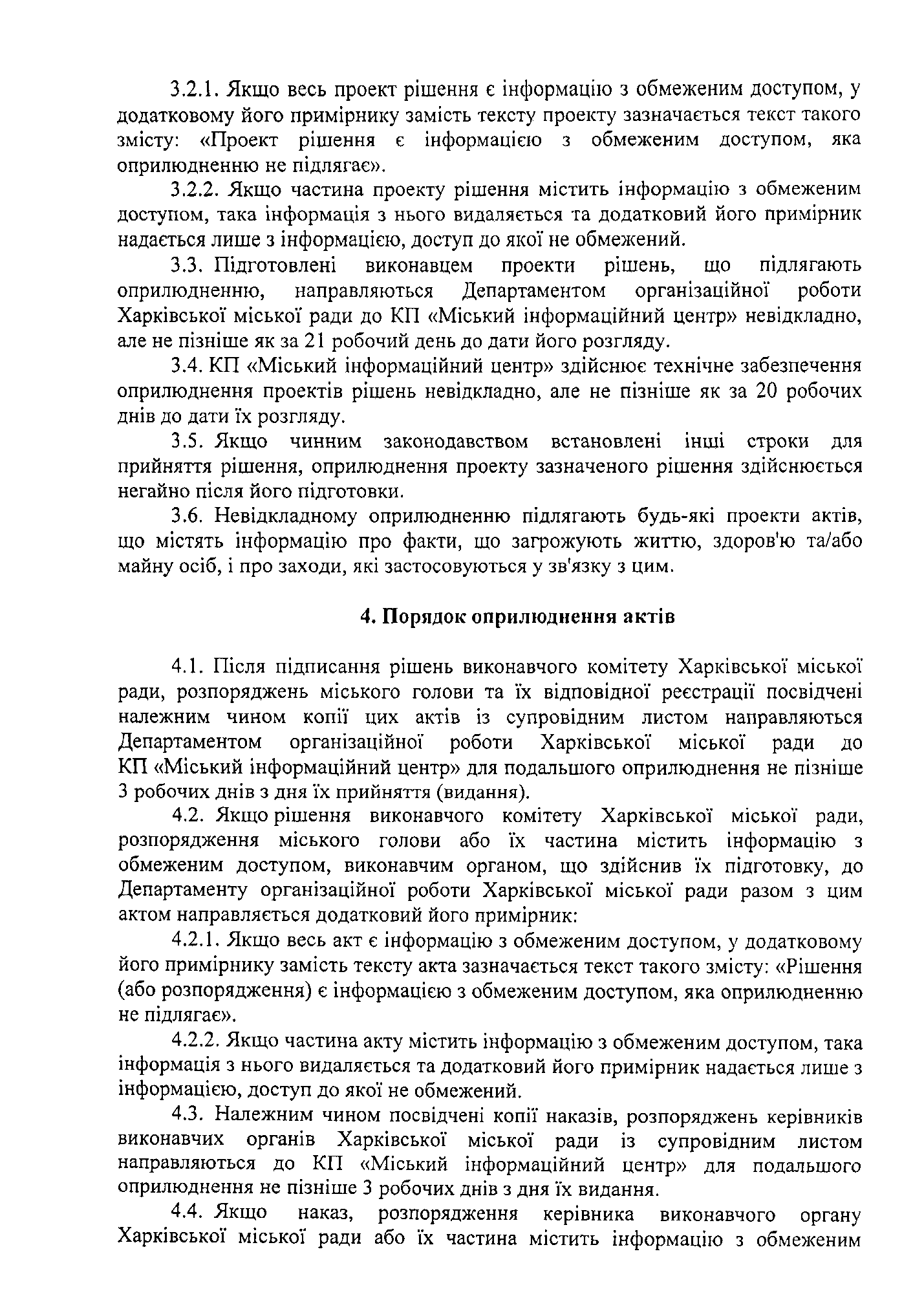 Про затвердження Порядку оприлюднення проектів рішень, що підлягають обговоренню, актів виконавчих органів та посадових осіб Харківської міської ради
