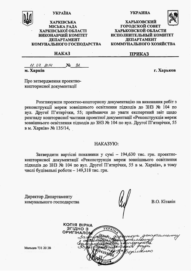 УКРАЇНА ХАРКІВСЬКА МІСЬКА РАДА ХАРКІВСЬКОЇ ОБЛАСТІ ВИКОНАВЧИЙ КОМІТЕТ ДЕПАРТАМЕНТ КОМУНАЛЬНОГО ГОСПОДАРСТВА НАКАЗ |