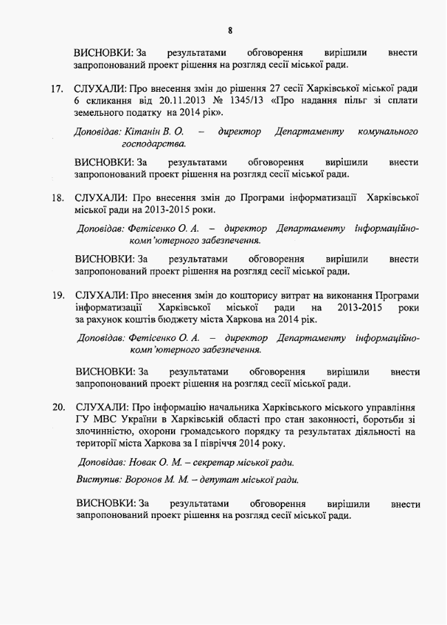 ПРОТОКОЛ спільного засідання постійних комісій Харківської міської ради 6 скликання