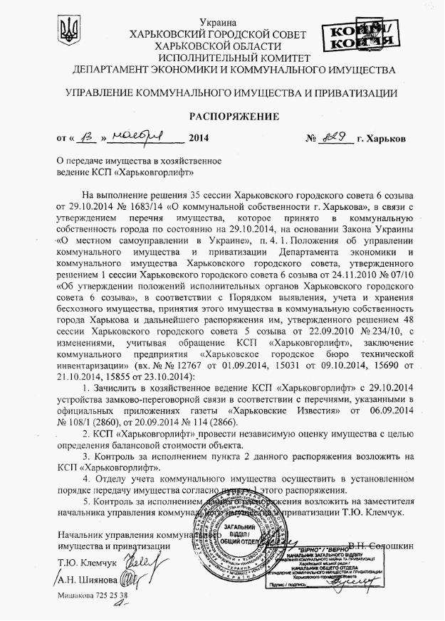 УКРАИНА ХАРЬКОВСКИЙ ГОРОДСКОЙ СОВЕТ ХАРЬКОВСКОЙ ОБЛАСТИ ИСПОЛНИТЕЛЬНЫЙ КОМИТЕТ ДЕПАРТАМЕНТ ЭКОНОМИКИ И КОММУНАЛЬНОГО ИМУЩЕСТВА УПРАВЛЕНИЕ КОММУНАЛЬНОГО ИМУЩЕСТВА И ПРИВАТИЗАЦИИ |
