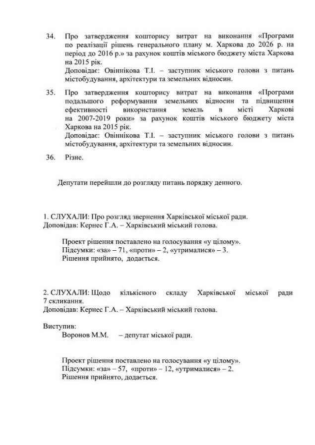 ПРОТОКОЛ пленраного засідання 37 (позачергової) сесіх Харківської міської ради 6 скликання