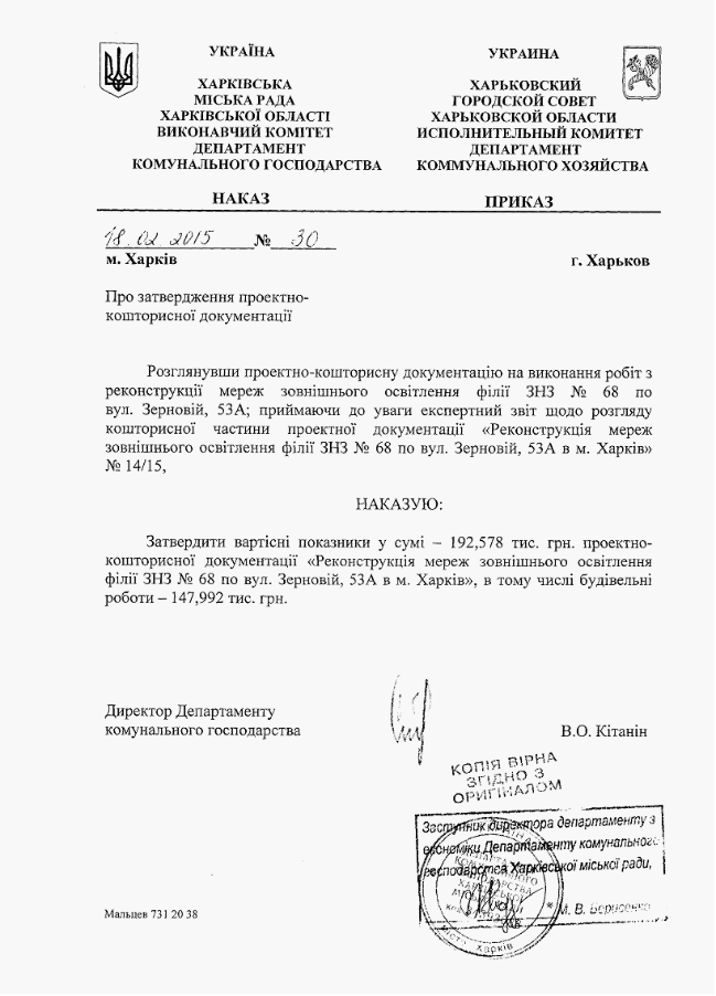УКРАЇНА ХАРКІВСЬКА МІСЬКА РАДА ХАРКІВСЬКОЇ ОБЛАСТІ ВИКОНАВЧИЙ КОМІТЕТ ДЕПАРТАМЕНТ КОМУНАЛЬНОГО ГОСПОДАРСТВА НАКАЗ |