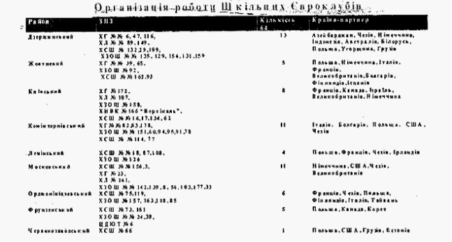 - налагодження безпосередніх контактів і партнерських зв'язків між навчальними закладами Харкова та школами-партнерами різних країн світу, закордонними українськими школами й освітніми центрами зарубіжжя;